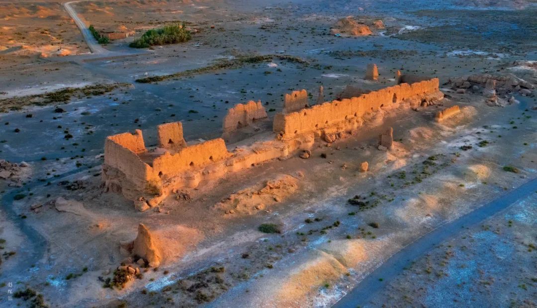 敦煌昌安倉遺址,位于敦煌市城西北約90千米的戈壁灘上,其西北距離玉門關11千米,北面為漢長城遺址,南側為絲路古道。這里也是“昌安倉”遺址,城為夯土版筑,東西長123米,南北寬17米,殘垣處最高6.7米。城內筑南北方向土墻兩堵,把城隔成三部分。南、北殘壁上留有通風小洞。每部分均開南門,外圍東、西、北三面加筑兩道圍墻,第一道圍墻斷壁尚存。自漢代到魏晉大方盤城一直是敦煌郡西部邊塞長城邊防儲備糧秣的重要軍需倉庫,為西域軍備提供物質保障。